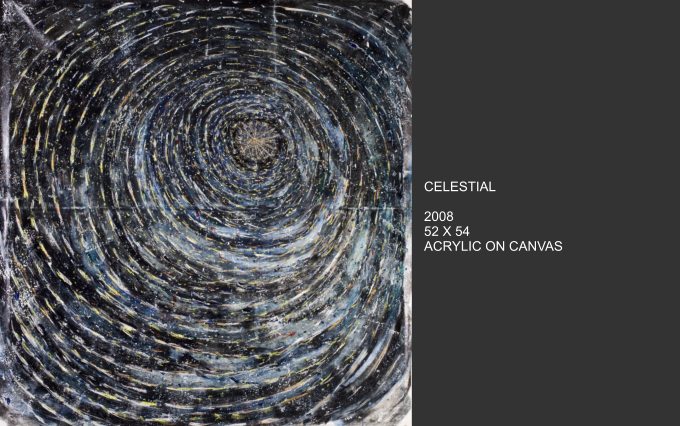Cosmos series addresses the power of time spinning endlessly in an uncontrollable yet mysteriously controllable universe. The works acknowledge the mystery of a spiritual power and energy that is encompassing and commanding.