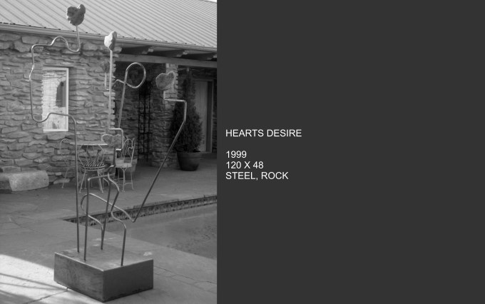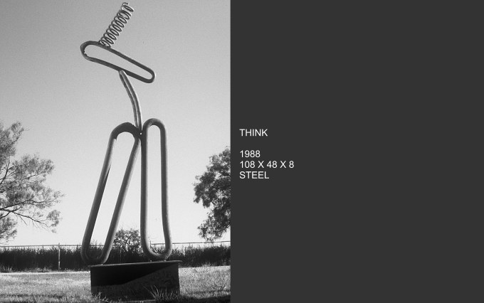 My early works were figurative sculptures in bronze, using the lost wax method. These works were influenced by my life in West Texas in a ranching territory and in New Mexico among the Indian history. As my art grew, I stretched and started working with aluminum, steel and rock. My works became minimal and representational, introducing me to the world of abstract art. Art grows as the artist becomes acuteley aware of his surroundings and is challenged to record what he feels and sees. My work stretched from figurative to conceptual abstract.